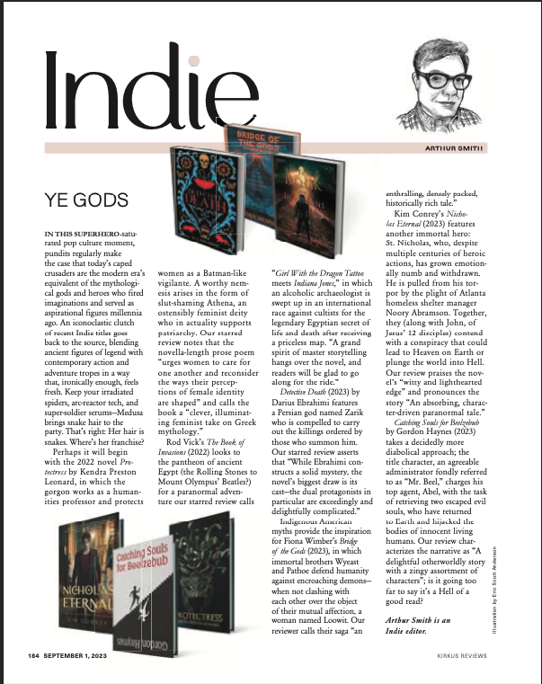 Protectress is featured again in Kirkus magazine, this time in a round-up of books about ancient gods! You can also access it here.