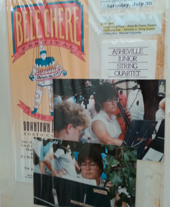 As a bonus, here’s me as a horse kid (age about 8, riding a school horse named Bess who was the best ever) and a young professional cellist (about 13, at Bele Chere, playing with my string quartet at the corner of Lexington and College Sts. I miss the earrings but not the huge glasses.) :